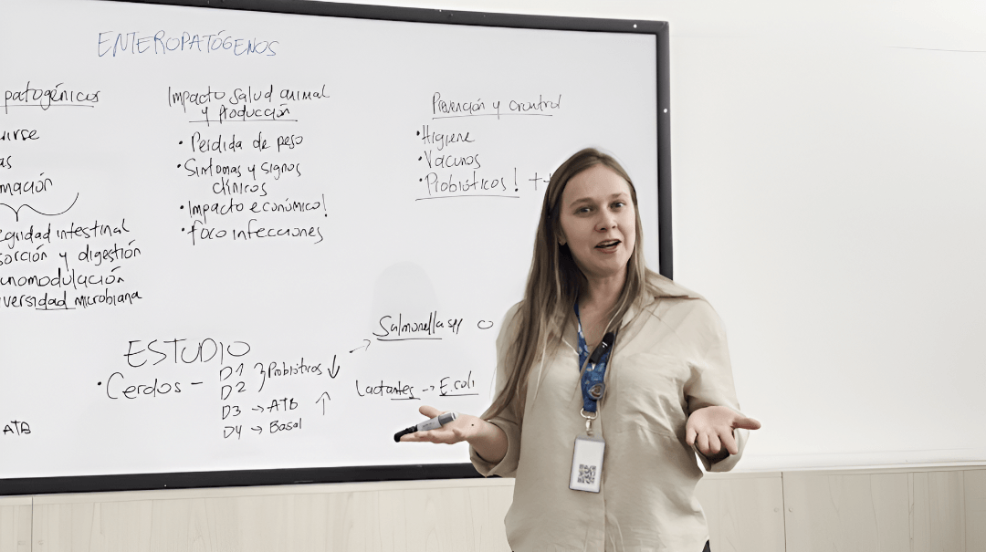 Te invitamos a ser parte de nuestra Masterclass sobre Enteropatógenos, una sesión exclusiva dictada por Johanna Urán, microbióloga con maestría en Ciencias Biomédicas Básicas. Esta clase marca el cierre del eje temático del primer trimestre de nuestra estrategia de divulgación científica, centrada en los desafíos que representan los enteropatógenos en la producción pecuaria.